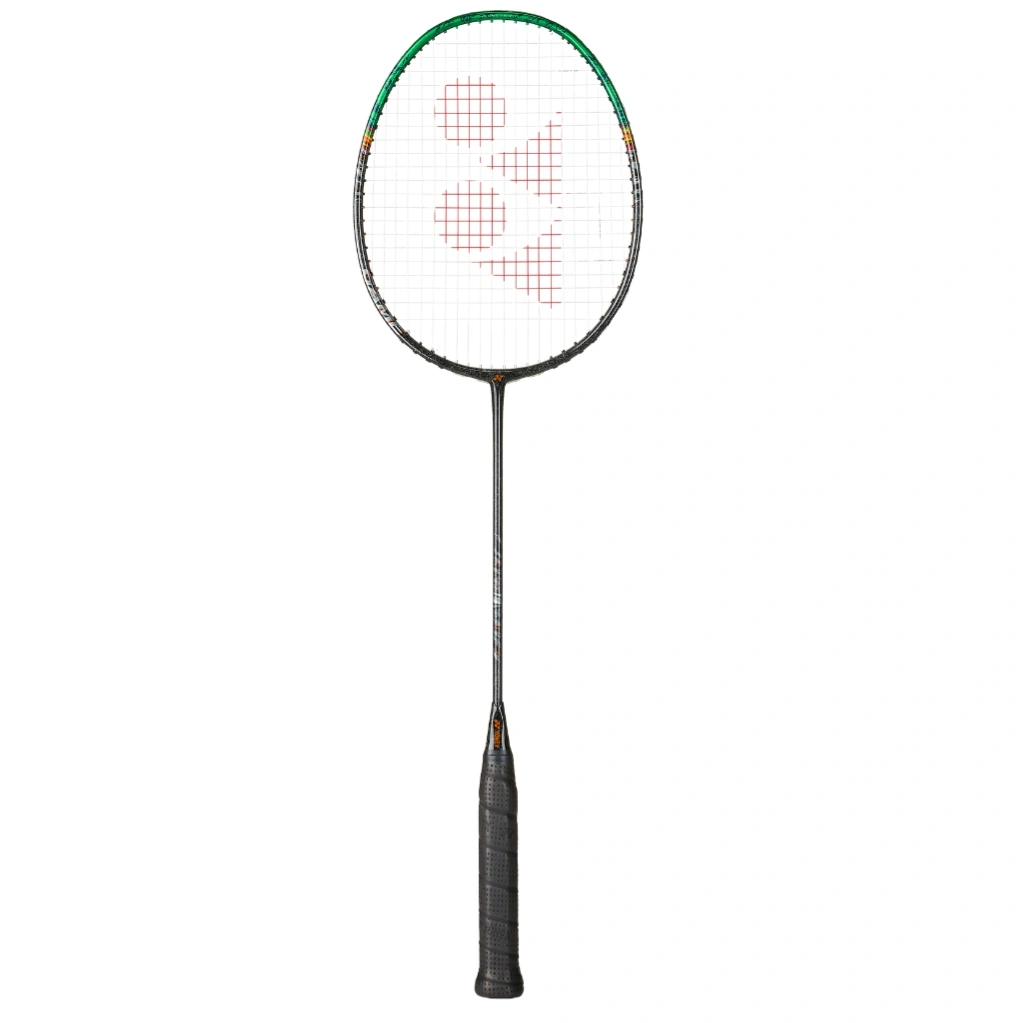 Every detail of the Yonex ASTROX 99 3rd Generation badminton racket embodies power in motion. Inspired by the cataclysmic energy of meteors colliding with planets, its design radiates strength and intensity. The bold black-and-green base, infused with marble-like textures, symbolizes raw force, while vibrant streaks of orange blaze from frame to grip--representing the seamless transmission of energy from racket to hand.