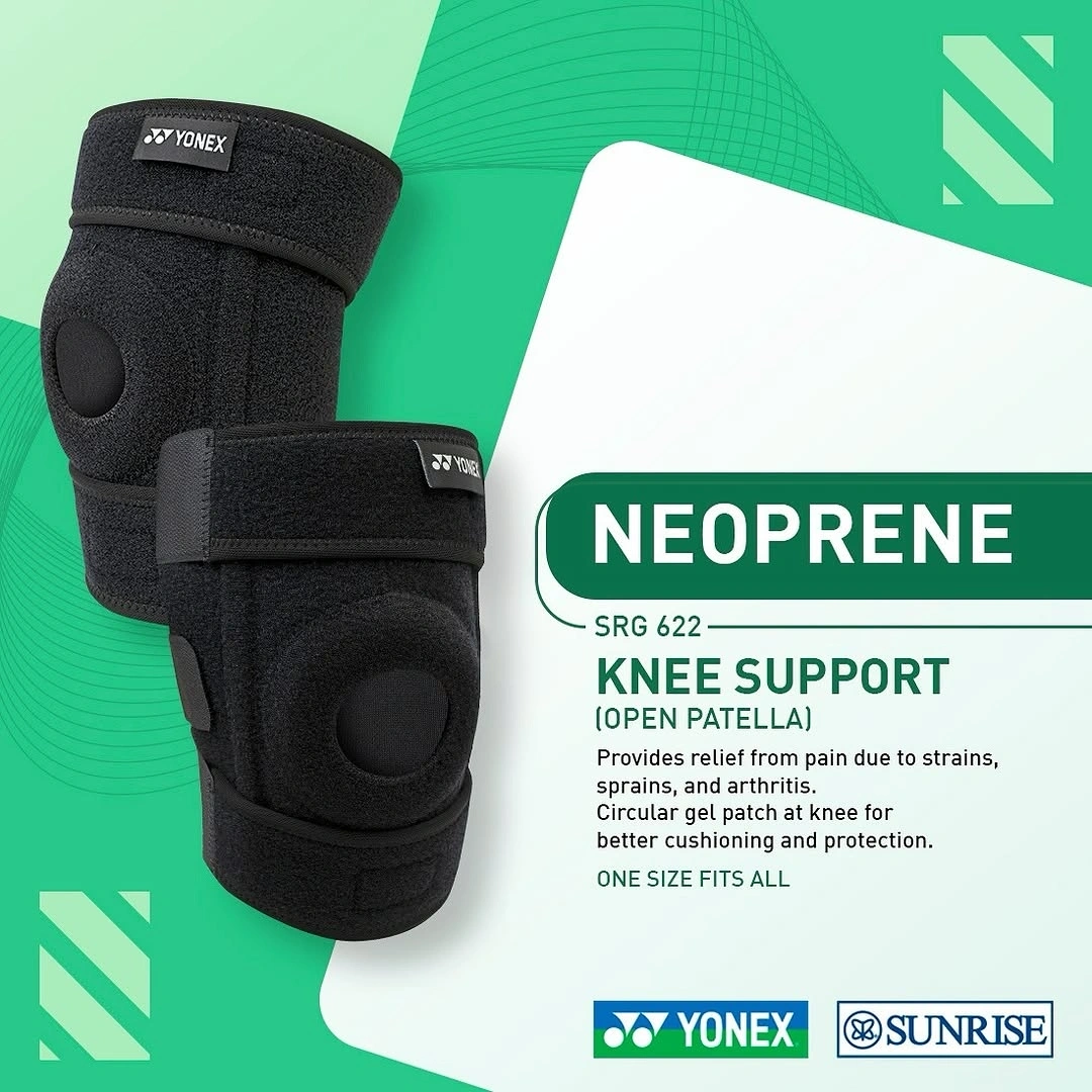 Yonex Neoprene Series Support SRG 622 are made from high grade closed cell neoprene fused with stretch nylon for maximum comfort. Neoprene is the ideal blended material for compression and heat retention which enhances blood circulation