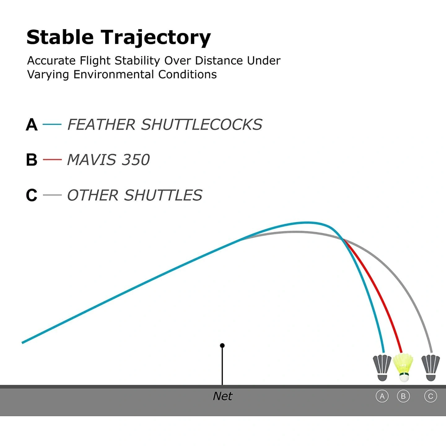 4x-5x More Durable: Tests show the Mavis 350 lasts four to five times longer than ordinary nylon shuttles.